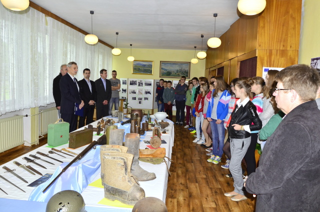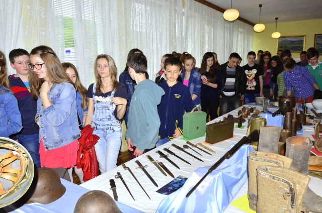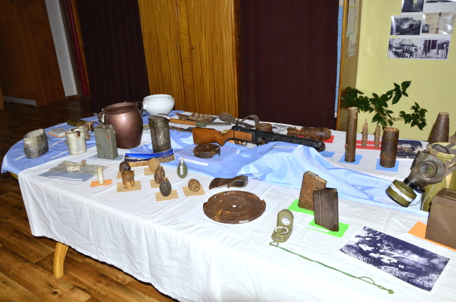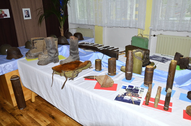 V týchto dňoch si obyvatelia miest a obcí pripomínajú 70. výročie ukončenia 2. svetovej vojny, najstrašnejšej udalosti v našich dejinách. V rámci májových osláv mesta Medzilaborce bola 6. mája 2015 otvorená v malej zasadačke MsÚ výstava vojnových artefaktov a fotodokumentácie za účasti Ing. Vladislava Višňovského primátora mesta, PhDr. Vladimíra Kokuľu hlavného kontrolóra mesta, Ing. Jozefa Antala tajomníka oblastného výboru SZPB, Vladimíra Šmigu predsedu základnej organizácie SZPB v Medzilaborciach, učiteľov, žiakov ZŠ Komenského a Duchnovičovej. V úvodnom príhovore primátor mesta vysvetlil zámer organizátorov v tom, že mladá generácia neoznala hrôzy vojny a preto na základe vystavených exponátov chceme, aby sa mládež oboznámila s históriou nášho kraja i dôsledkami, ktoré zo sebou priniesla pre tunajšie obyvateľstvo. Zároveň sa poďakoval spoluorganizátorom výstavy Petrovi Lukačíkovi a Vladimírovi Protivňakovi – zberateľom vojnových artefaktov za ich sprístupnenie a výklad o jednotlivých vystavovaných artefaktov pre návštevníkov výstavy.