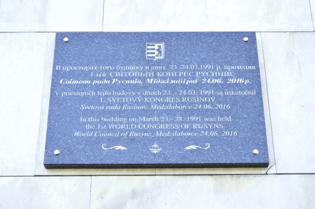 Dňa 24. júna 2016 od 16,00 hod Rusínska obroda na Slovensku jej Miestna organizácia v Medzilaborciach v spolupráci s mestom Medzilaborce a Svetovým kongresom Rusínov pri príležitosti 25. výročia konania sa I. Svetového kongresu Rusínov tejto významnej udalosti v meste, zrealizovali odhalenie pamätnej tabule na budove Domu kultúry v Medzilaborciach za prítomnosti domácich i zahraničných hostí.